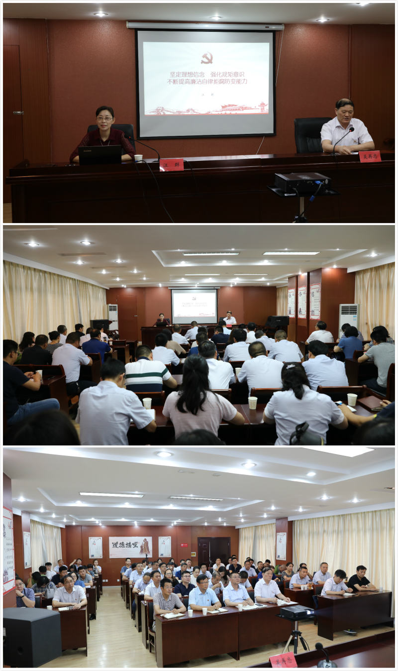 7月16日下午,集團(tuán)公司紀(jì)委書記汪群在金橋房地產(chǎn)黨群服務(wù)中心會(huì)議室,為供電公司和房地產(chǎn)公司部分黨員講了一堂以“堅(jiān)定理想信念,強(qiáng)化規(guī)矩意識(shí),不斷提高廉潔自律拒腐防變能力”為主題,以黨風(fēng)廉政教育與反腐敗警示教育為主要內(nèi)容的專題黨課。雙方單位的領(lǐng)導(dǎo)班子成員、各基層單位班子成員、各部門負(fù)責(zé)人以及涉及招標(biāo)采購、工程建設(shè)、財(cái)務(wù)審計(jì)等崗位相關(guān)人員參加黨課。黨課由供電公司黨委書記吳再忠主持。