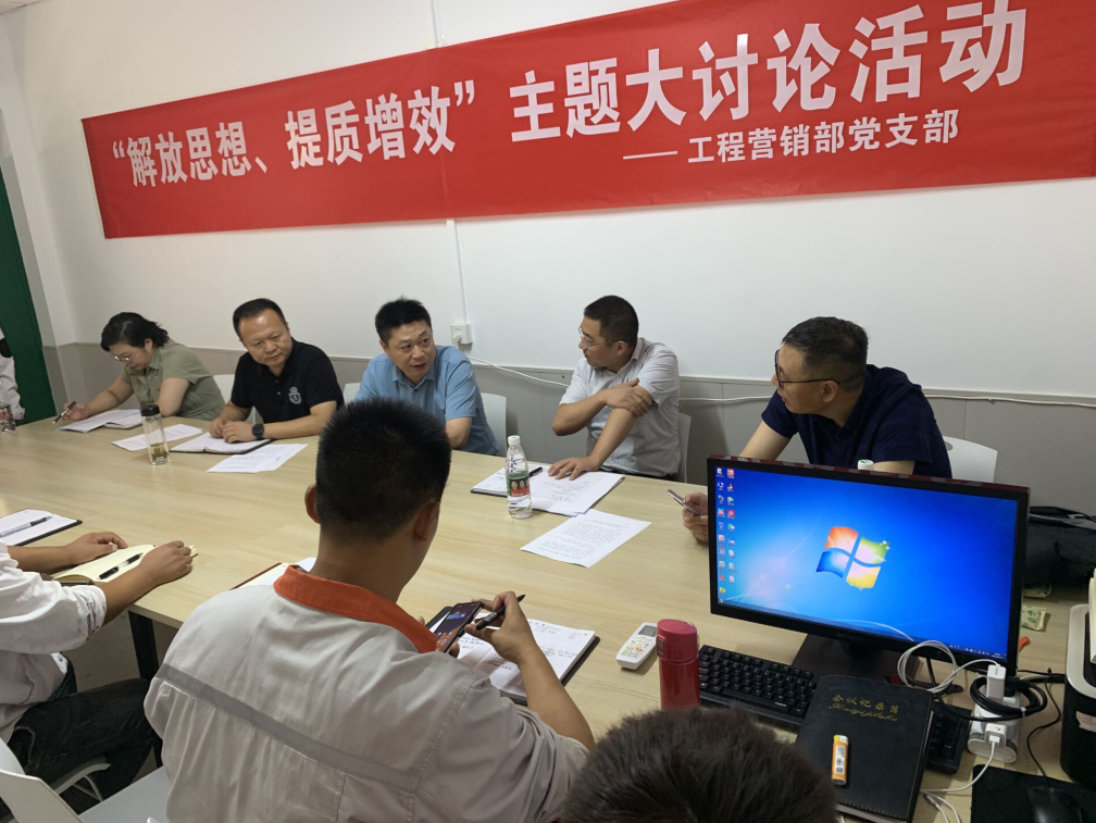 8月11日上午,工程營銷部開展“解放思想、提質(zhì)增效”主題大討論活動,公司黨委書記、總經(jīng)理宋晟曄,總經(jīng)理助理徐健,生產(chǎn)技術(shù)部部長張雷海參加討論。會議由工程營銷部副部長賀通華主持。