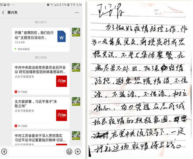 為了引導(dǎo)黨員統(tǒng)一思想認識,凝聚思想共識,激發(fā)黨員做好疫情防控工作的思想自覺和行動自覺。2月12日,臺南供電所通過微信方式組織開展了“疫情防控,我們在行動”主題黨日活動。在微信平臺上,黨員們共同學(xué)習(xí)了《中共中央政治局常務(wù)委員會召開會議研究新型冠狀病毒感染的肺炎疫情防控工作 》、《五方面部署,習(xí)近平落子“決勝之地”》、《江蘇省委常委會召開會議進一步把疫情防控工作做實做細做到位》重要指示精神;同時,開展了“我為疫情防控出份力”活動,全體黨員暢談疫情防控體會和做法。黨員王守富在活動中表示,作為一名基層黨員,前提是形成思想共識,不參與集體聚餐,在家盡量不外出,不信謠、不傳謠,樹立信心奮力營造眾志成城抗擊疫情的積極氛圍,在黨中央統(tǒng)一領(lǐng)導(dǎo)下,一定能打好疫情防控保衛(wèi)戰(zhàn)。(劉繼美)