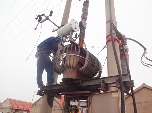 連日來,天氣持續(xù)高溫,用電負荷也隨之加大,轄區(qū)原有設計的供電線路及變壓器容量已不能滿足居民生活用電的需求,供用電矛盾日益突出。特別是4號變壓器供電區(qū)域大、容量小,已嚴重危急到供電質量和供電安全運行。為此,所領導決定將原有的160KVA變壓器更換為250KVA變壓器。為了避開高溫時斷,大家起早作業(yè),但還是忙的汗流浹背。他們顧不上休息,加快設備更換速度,終于在上午八點前完成更換任務,恢復供電。(王志勇)