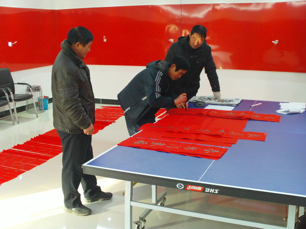 本次活動(dòng)以“健康快樂(lè),平安幸?!睘橹黝},并在一場(chǎng)緊張激烈的撲克牌摜蛋比賽中拉開(kāi)序幕,隨后又開(kāi)展了義務(wù)“寫(xiě)春聯(lián)”贈(zèng)送活動(dòng)。在義務(wù)“寫(xiě)春聯(lián)”活動(dòng)中,該所副所長(zhǎng)胡維華同志揮毫潑墨,書(shū)寫(xiě)春聯(lián)100多副,獲得了大家的一致好評(píng),營(yíng)造了歡樂(lè)祥和喜慶的節(jié)日氣氛。