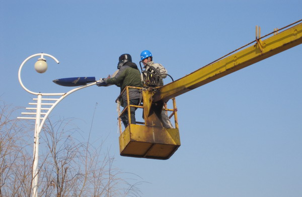 1月23日,為使青口鹽場居民過一個快樂、詳和、明亮的春節(jié),青口供電所組織職工義務為鹽場檢修路燈。(宋中文)