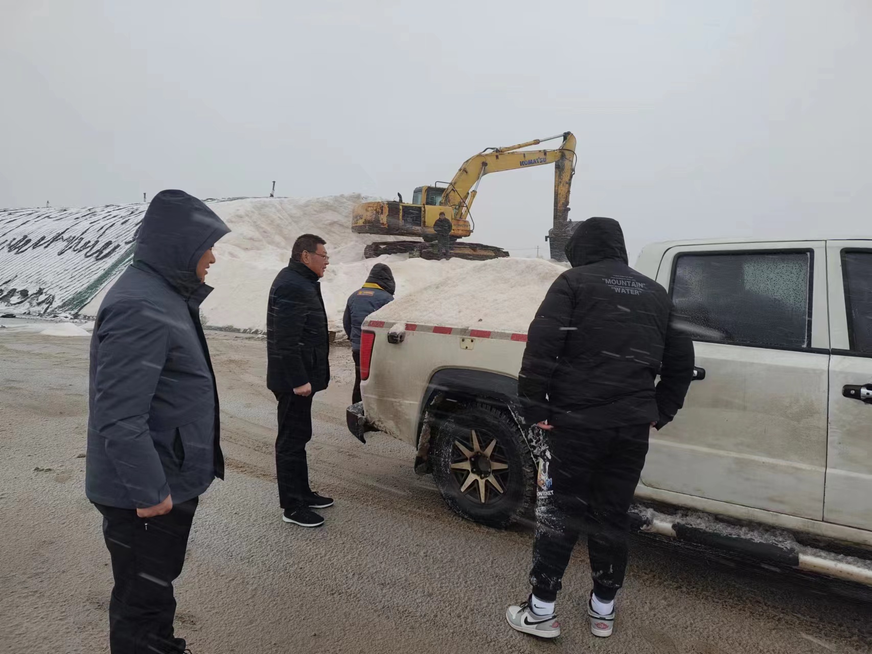以雪為令,全力奔赴清雪戰(zhàn)一線。隨著降雪量增大,采取“人工+機械”的作業(yè)方式,使用自產(chǎn)原鹽融雪劑對轄區(qū)中二圩居民點、鹽灘內(nèi)部道路、辦公區(qū)域等20余條主次干道不間斷地毯式清雪除冰作業(yè)。清雪現(xiàn)場,大家不畏嚴寒,積極行動,鏟的鏟、推的推,干得熱火朝天,開辟出一條方便群眾出行的“安全路”。截止目前,已累計出動車輛30余臺次,300余人次參與清雪除冰行動,確保職工群眾“雪中通行,雪后路清”。