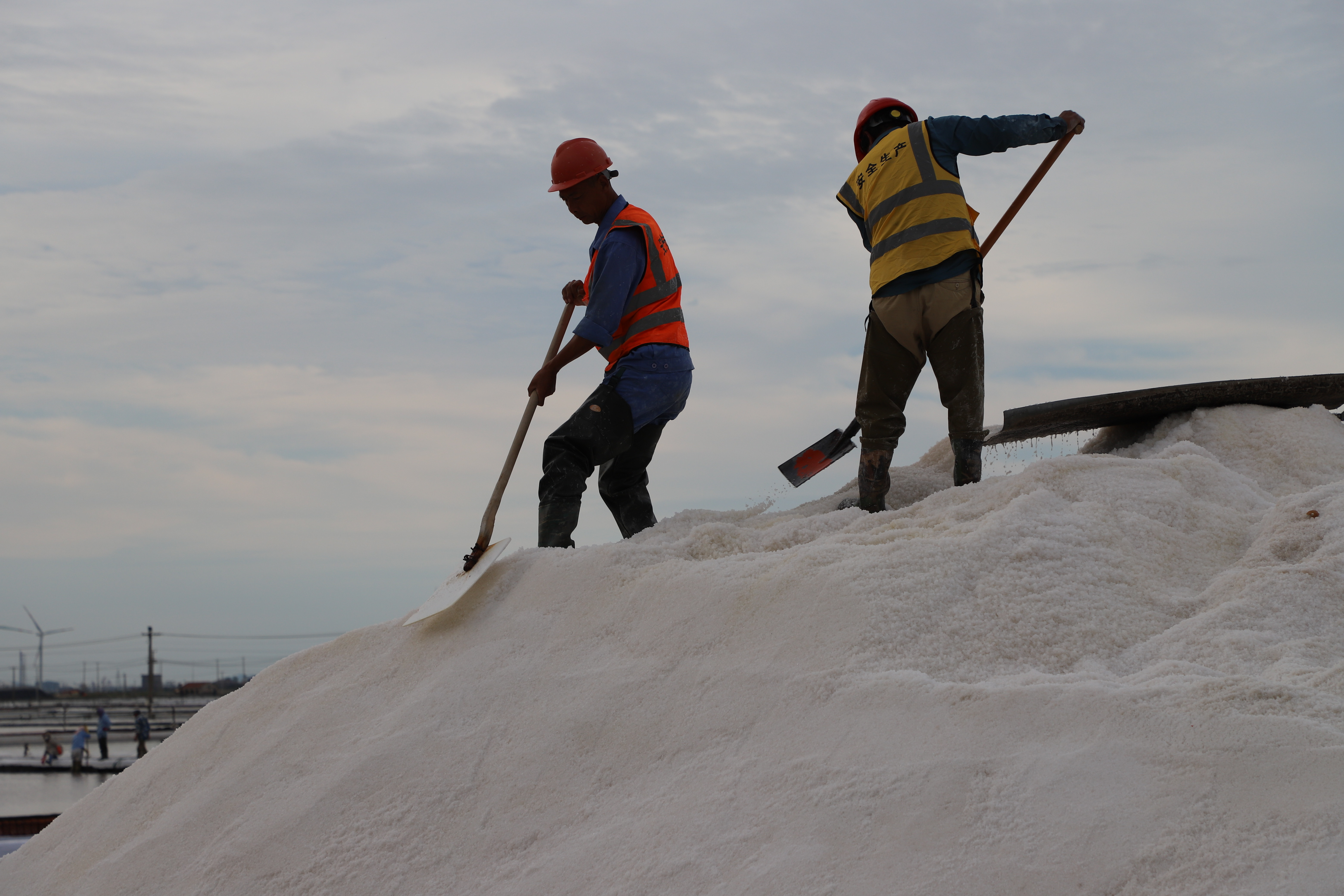 原鹽生產(chǎn)不松勁。每年的國慶假期總是與“秋扒”不期而遇。由于受連續(xù)的陰雨天氣影響,今年的秋扒工作一度延后。9月29日--9月30日,凌晨5點(diǎn)鐘,日曬鹽田的鹽圩小路像往常一樣成了一道最美的風(fēng)景線,鹽工們?nèi)蔽溲b奔赴各自工作點(diǎn)位進(jìn)行收拉塑布、排淡等工作。為了搶時(shí)間,抓進(jìn)度,鹽工們緊鑼密鼓地忙碌起來,籌備扒鹽工作,天氣剛轉(zhuǎn)好,只見有的在整理塑布,有的破碴,10月2日,10臺扒鹽機(jī)組全部運(yùn)轉(zhuǎn)起來,潔白的鹽廩逐漸擴(kuò)大,節(jié)日期間將扒鹽30000余噸。