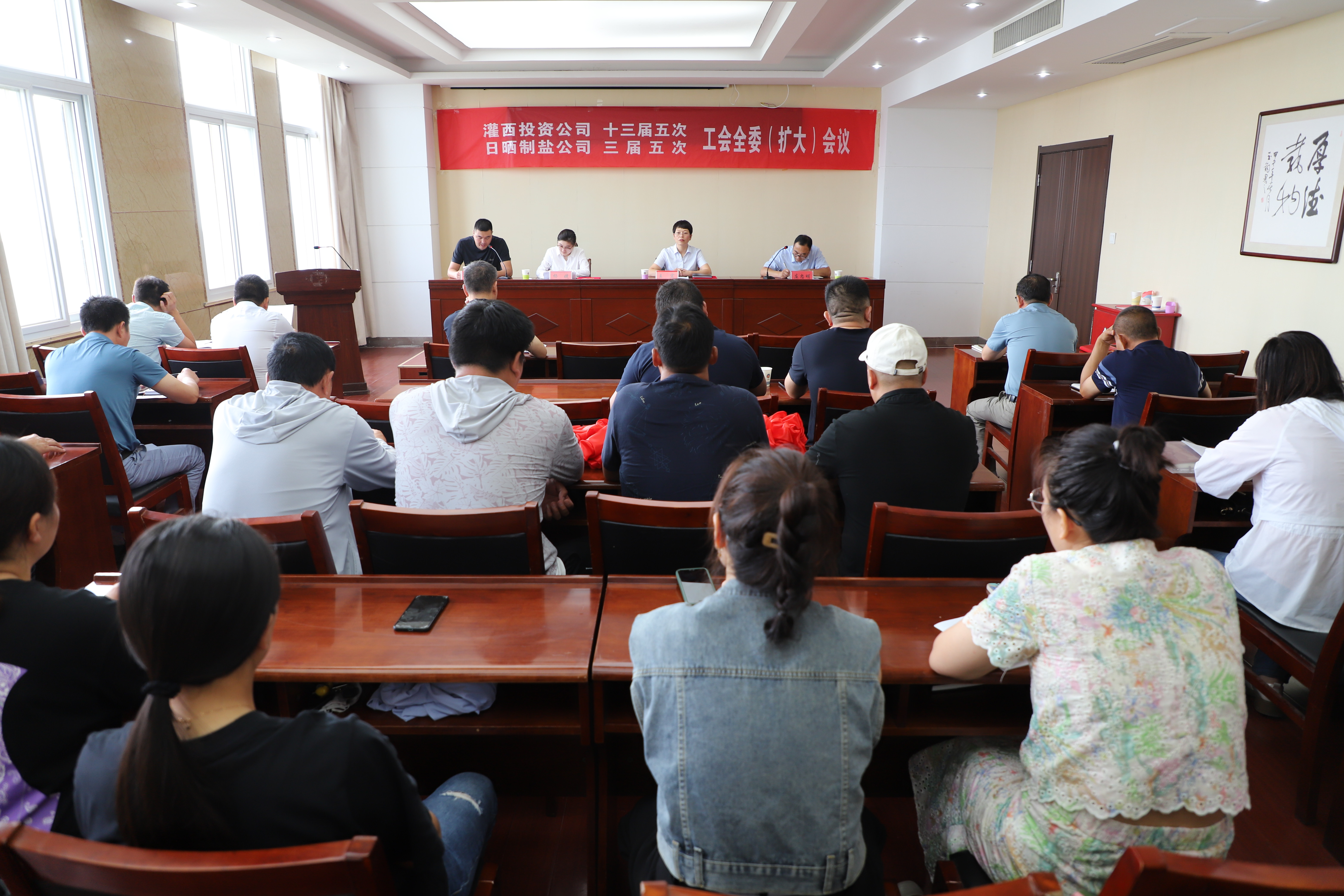 8月17日,灌西投資公司召開(kāi)十三屆五次、日曬制鹽公司三屆五次工會(huì)全委(擴(kuò)大)會(huì)議,公司黨委副書記、工會(huì)主席王宏出席會(huì)議,灌西投資公司工會(huì)十三屆、日曬制鹽公司工會(huì)三屆委員會(huì)全體委員,各單位工會(huì)主席、女工委員參加會(huì)議。