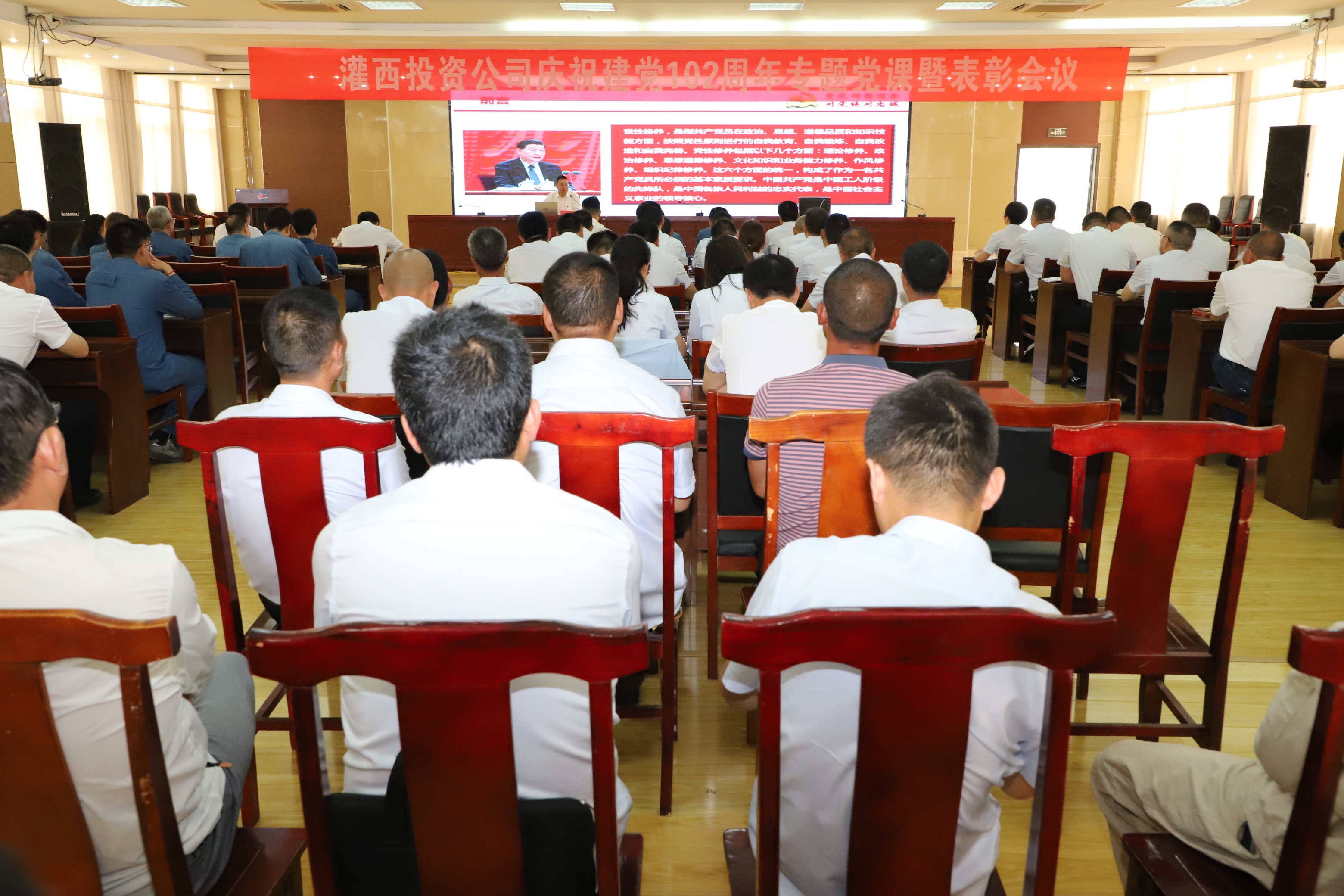 為深入學(xué)習(xí)貫徹黨的二十大精神,熱烈慶祝中國(guó)共產(chǎn)黨成立102周年,6月30日上午,灌西投資公司黨委舉辦慶祝建黨102周年專(zhuān)題黨課暨表彰大會(huì),公司領(lǐng)導(dǎo)班子成員、各單位副職級(jí)以上黨員、機(jī)關(guān)全體黨員、預(yù)備黨員、受表彰人員及特邀華能熱電公司黨員參加會(huì)議,公司黨委副書(shū)記、工會(huì)主席王宏主持會(huì)議。