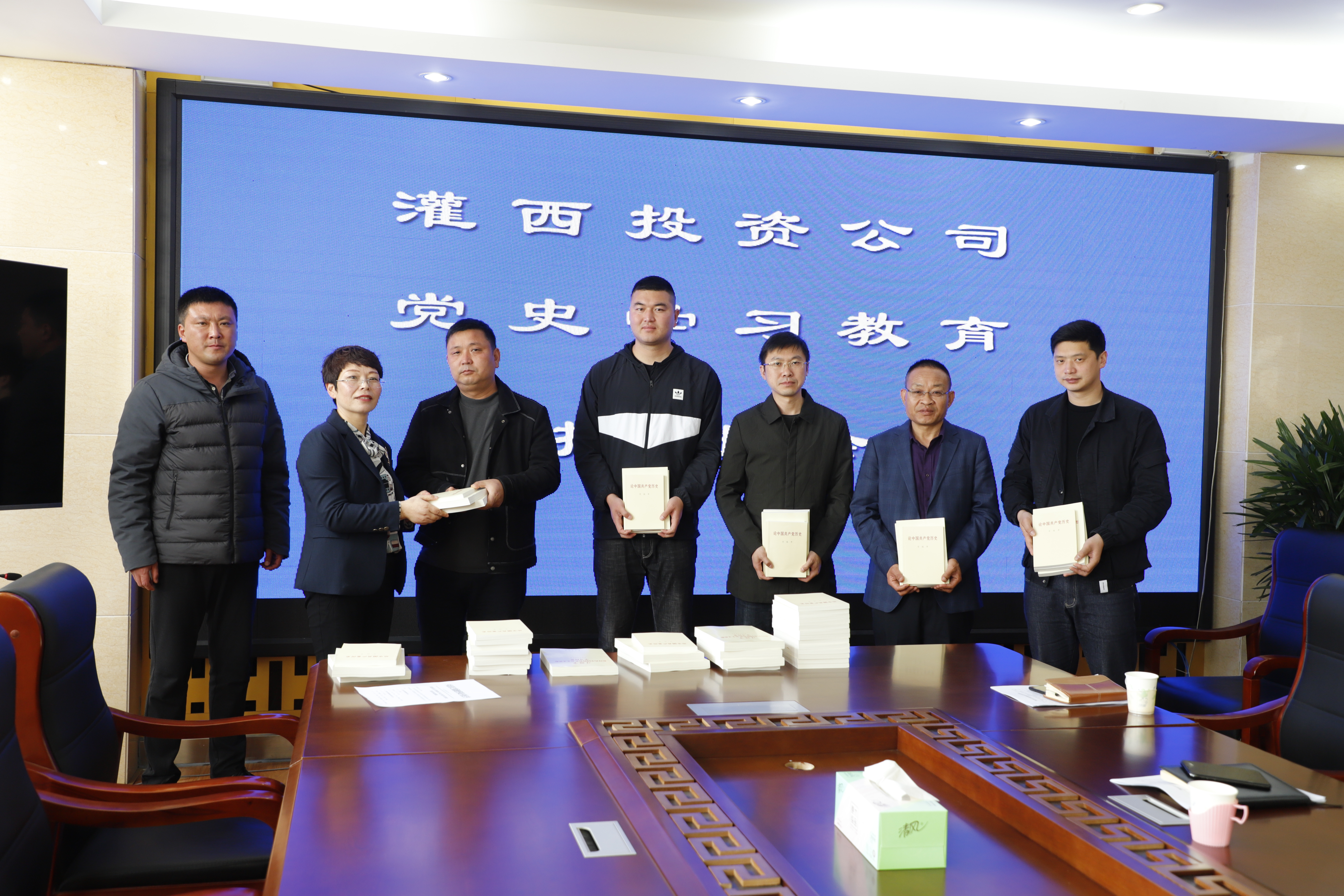 會議結(jié)束,黨委副書記王宏贈送黨史學習書籍給各個支部。(靳靜)