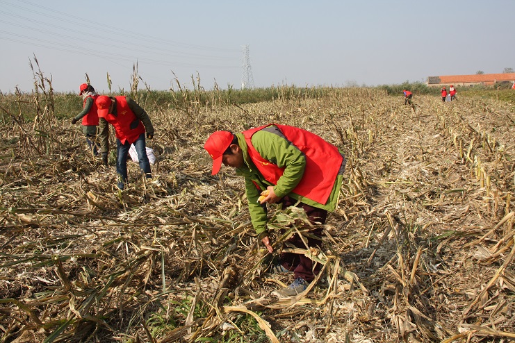 目前,位于柴門居民點(diǎn)附近的灌西實(shí)業(yè)公司農(nóng)田已進(jìn)入作物收獲期,由于所種玉米已經(jīng)完全成熟,且經(jīng)歷了一次大風(fēng)降溫天氣,所以在機(jī)械進(jìn)場作業(yè)前,有部分玉米已經(jīng)掉落在了地上,如不及時(shí)撿拾,將造成極大浪費(fèi)。公司團(tuán)委在得知這一消息后,立即組織近十名青年志愿者利用中午休息時(shí)間,到該公司農(nóng)田開展撿拾散落玉米志愿服務(wù)活動(dòng)?;顒?dòng)中,大家手拿編織袋,排成橫排仔細(xì)搜尋并緩慢向前推進(jìn)。由于玉米皮與秸稈顏色相近且混雜在一起很難分辨,因此大家在撿拾過程中不僅需要認(rèn)真搜尋,有時(shí)還需要彎腰翻動(dòng)秸稈,以最大限度的不遺漏任何一個(gè)散落的玉米。