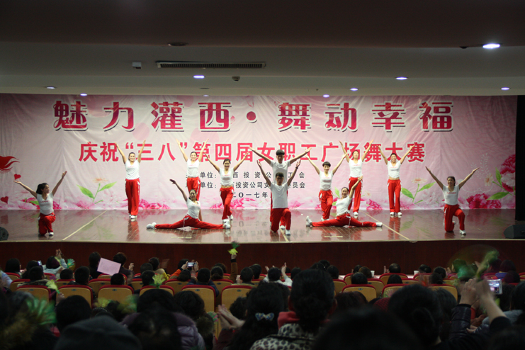 3月8日下午,灌西投資公司第四屆“魅力灌西•舞動幸福”廣場舞比賽在灌云縣臨港產(chǎn)業(yè)區(qū)管委會禮堂舉行,由公司各單位的女工組成的8支代表隊(duì)參加角逐,廣大女工用婀娜的舞姿和精彩的表演慶祝國際“三八”婦女節(jié)的到來,觀看比賽的職工群眾有400余人。