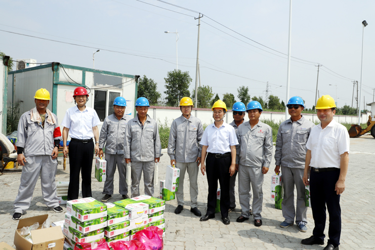 在灌西宵洋公司五灌河碼頭作業(yè)現(xiàn)場,胡建明代表集團公司向在一線的碼頭工人們表示深切的感謝和慰問,感謝他們在烈日下為集團所付出的辛勞,并叮囑碼頭工人避開高溫時段,科學(xué)合理安排好作業(yè)時間,既要保證生產(chǎn)作業(yè)質(zhì)量和進度,又要注意高溫生產(chǎn)作業(yè)安全。
