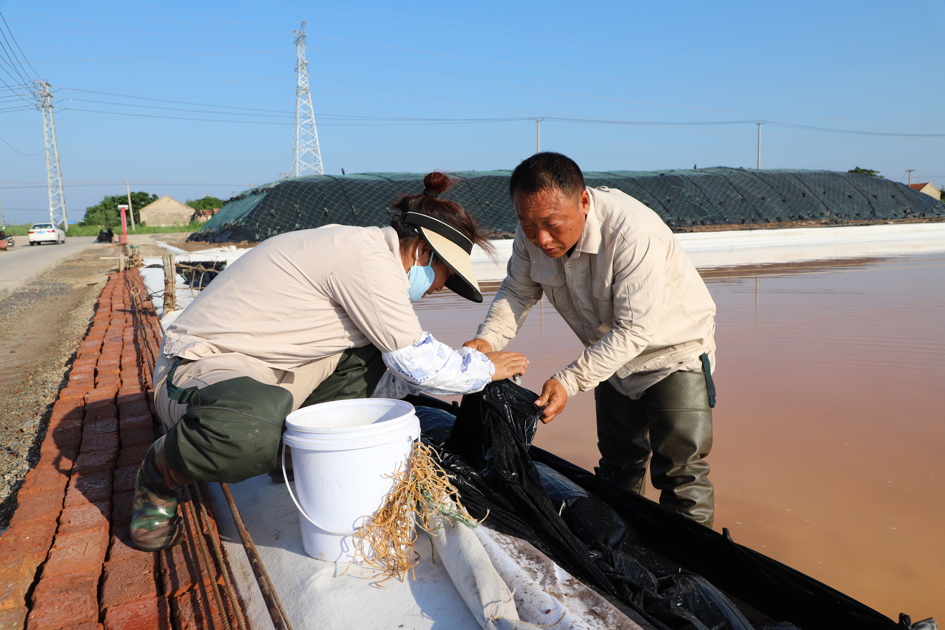 日曬制鹽的生產(chǎn)黃金季節(jié),也是職工最辛苦的一段時期。驕陽烈日下,萬畝銀灘鹵水潺潺、“五彩斑斕”,一線職工的戶外勞作泡在熱氣蒸人的鹵水里修補塑布、整修池堰、更新塑布揮汗如雨,池子里長著鹽,身上結(jié)著鹽霜,黑得發(fā)亮的皮膚在一次次曬脫皮后成了天然的“保護色”。一面面黨旗高高飄揚,一枚枚黨徽閃耀奪目,同心協(xié)力筑起了一座座堅不可摧的“紅色堡壘”,奏響了一曲倍增發(fā)展、砥礪奮進的“紅色戰(zhàn)歌”,為這個“鹽”炎夏日增添了一抹亮麗的底色。(新河制鹽)