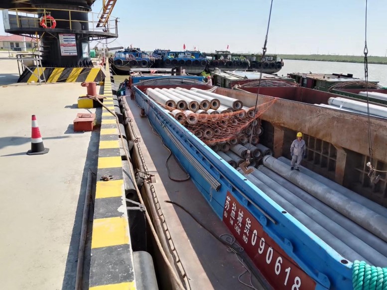 管樁的裝卸和別的貨物相比,安全風(fēng)險更大,所以在裝卸管樁時,宵洋管理人員要深入現(xiàn)場,緊盯嚴(yán)管,對管樁的重要環(huán)節(jié),一邊講解注意事項,一邊手勢指揮,塔吊師傅小心翼翼,嫻熟地拔弄著操作手把,通過塔吊搬運,五噸的管樁在半空中調(diào)試到最佳位置,最后平穩(wěn)著落,從船艙吊起的管樁,運送到貨車上,艙內(nèi)的三名工人,齊心協(xié)力,配合得相當(dāng)默契,掛在吊機上的管樁,看似簡單的一鉤一掛,不僅要調(diào)整管樁擺放角度,還要檢查鋼繩是否牢固,為了安全起見,在船艙和管樁之間,又架起了一層防護網(wǎng),防止掛鉤工摔倒跌落,采取一系列防范措施,確保萬無一失。經(jīng)過一天的忙碌,望著遠去車輛,每當(dāng)圓滿完成當(dāng)天卸管樁任務(wù)后,工人們憨厚老實臉上,露出了滿意的微笑,這就是我們宵洋工人搬卸管樁情景的真實寫照!(宵洋物流公司胡秀同)