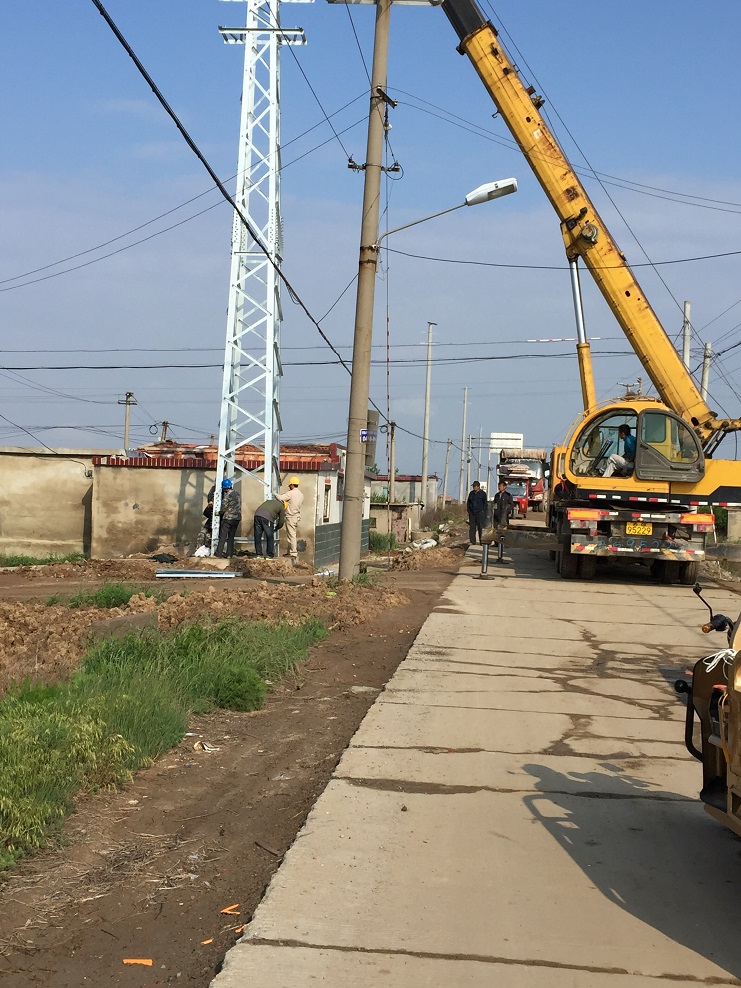 促和諧 共發(fā)展 新河制鹽協(xié)助供電公司架設(shè)電網(wǎng)
