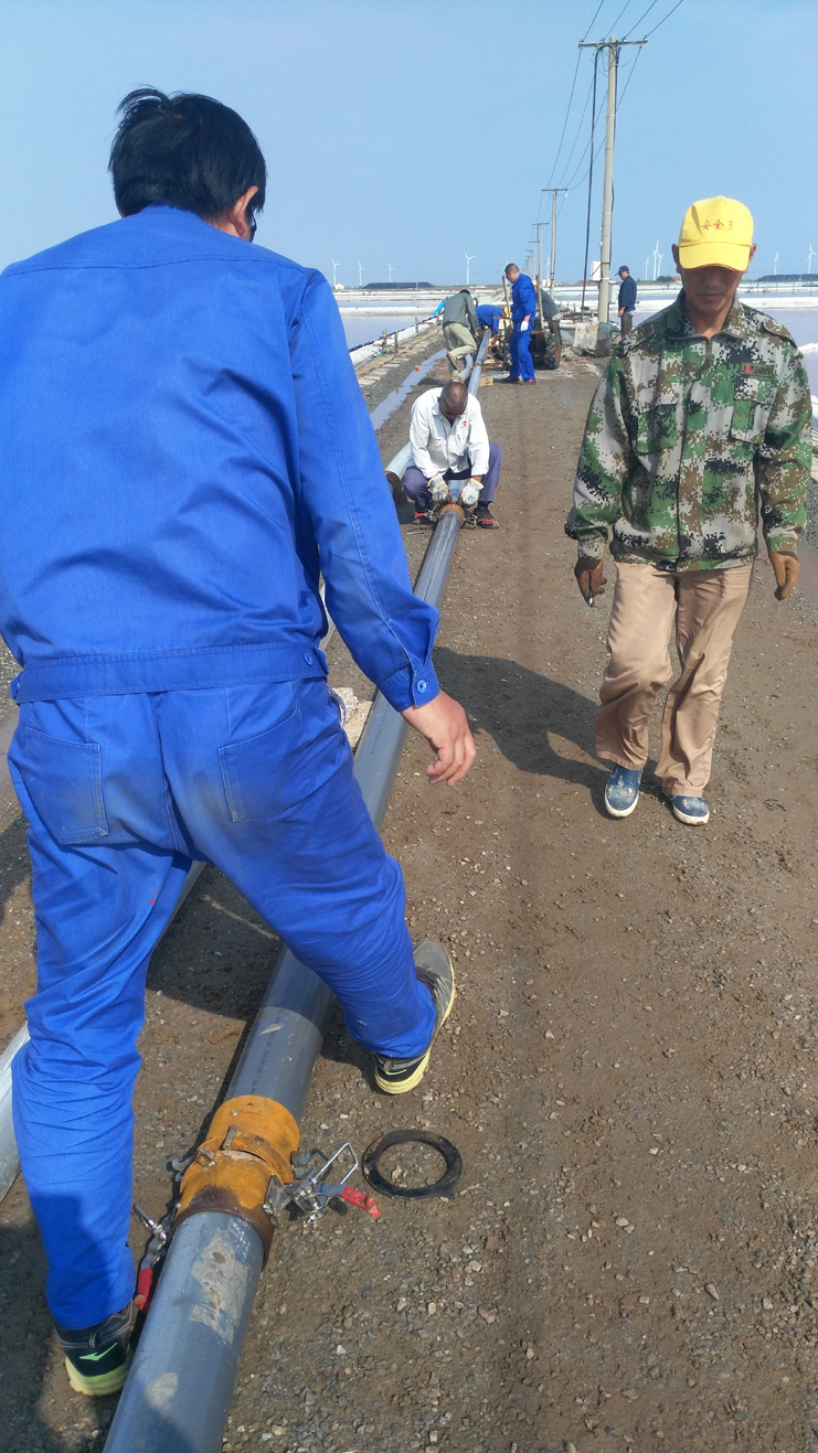 為節(jié)省扒鹽管道拆、裝時間,提高扒鹽速度,減輕扒鹽人員負荷,6月11日上午機電服務公司新制快接管道在埒南制鹽公司11班進行現(xiàn)場實踐。他們放棄休息日,制作人員全員參與,市勞模王緒華、一星級員工程洪連、黨員楊軍,他們個個不怕臟和累,經(jīng)過一個多小時操作,管道安裝結(jié)束,在幾次調(diào)試后,扒鹽機組運行正常。該快速接頭優(yōu)點是安裝、拆解快捷,節(jié)約成本,不足是皮墊易漏鹵。通過此次試運行,對不足之處,該公司將繼續(xù)研究,爭取早日投入鹽業(yè)生產(chǎn),創(chuàng)造效益。(機電服務公司)