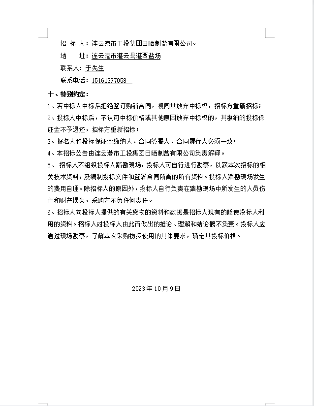 連云港市工投集團日曬制鹽有限公司 玻璃纖維桿招標公告