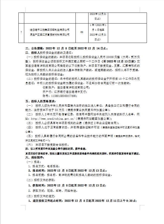 連云港宵洋物流有限公司原鹽車輛運(yùn)輸項(xiàng)目招標(biāo)公告