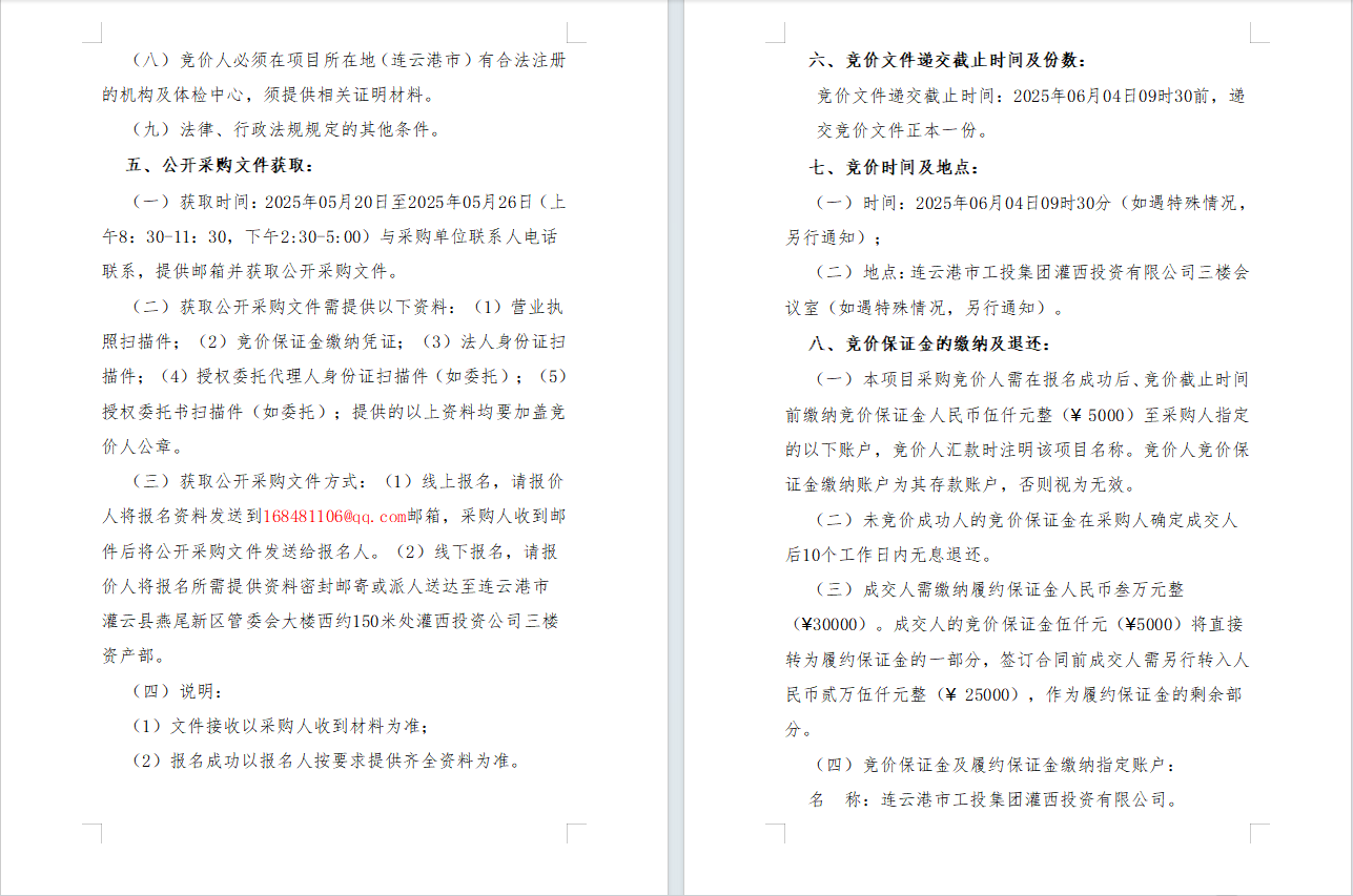 2025年度連云港市工投集團灌西投資有限公司職工體檢項目采購公告
