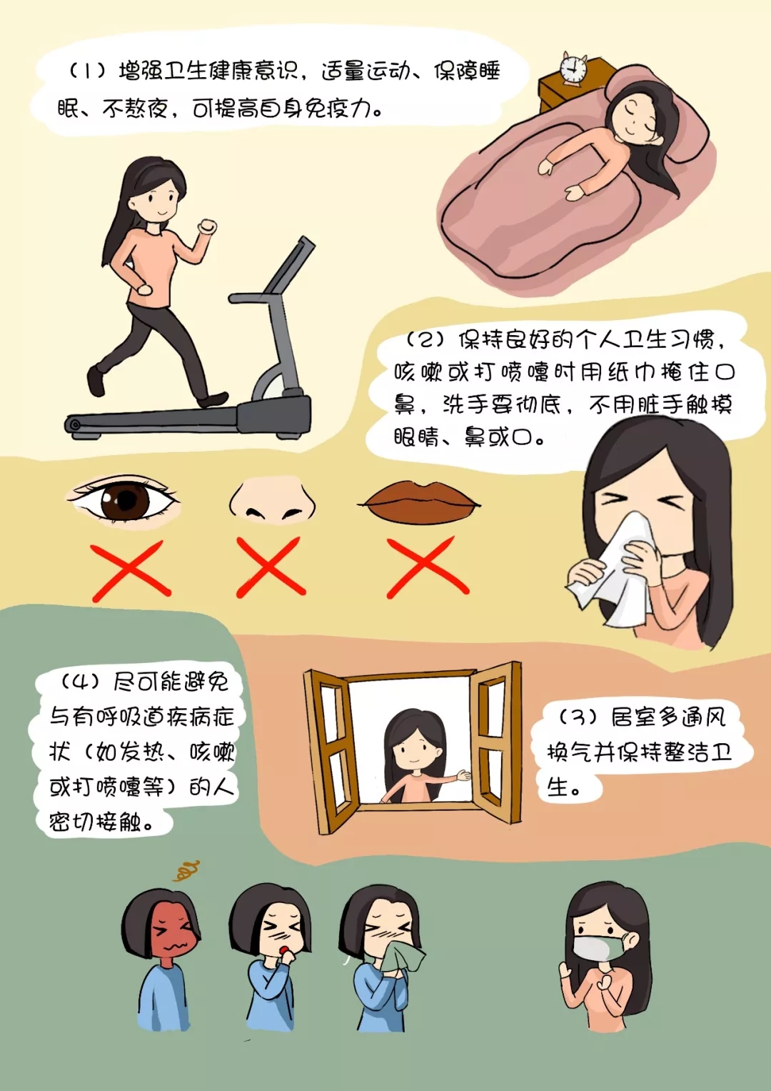 (3)居室多通風(fēng)換氣并保持整潔衛(wèi)生。