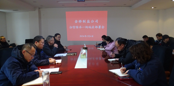 公司副總經(jīng)理凌家佳傳達了《集團公司氣象災(zāi)害應(yīng)對工作提示單》要求。公司黨委書記、董事長、總經(jīng)理田磊宣讀《公司掃雪除冰事故專項應(yīng)急預(yù)案》,并就啟動掃雪除冰一級響應(yīng)工作提要求:要提高認識、統(tǒng)籌推進,加強值班值守,切實提高冰雪清除工作的效率和質(zhì)量;要統(tǒng)一思想、奮力擔(dān)當(dāng),履行好安全生產(chǎn)責(zé)任,全力做好融雪鹽市場保供工作。