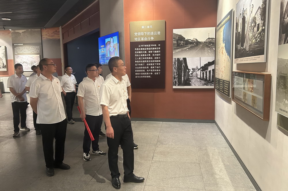 在連云港市革命博物館莊嚴肅穆的展廳內,大家認真聆聽講解員講述連云港地區(qū)的革命斗爭史。一件件珍貴的歷史文物、一幅幅生動的歷史照片,再現了革命先烈們?yōu)槊褡褰夥攀聵I(yè)英勇奮斗的光輝歷程。在革命烈士浮雕前,全體黨員整齊列隊,重溫入黨誓詞,強化政治信仰,增強責任擔當。