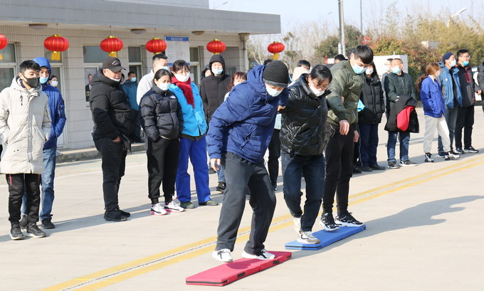 1月29日,我公司開展“迎新春”趣味運動會。黨委書記、董事長、總經(jīng)理朱桂玉,黨委副書記、紀(jì)委書記、工會主席曹開明,總經(jīng)理助理王洋分別為獲獎人員頒獎。 活動開始前,黨委副書記、紀(jì)委書記、工會主席曹開明對本次活動提出要求,并提前祝大家新春快樂、闔家歡樂、萬事如意。本次活動共設(shè)置了一字長龍運球、沙包投擲、接力跑、跳大繩、同心擊鼓等8個職工喜聞樂見的項目?;顒蝇F(xiàn)場,職工熱情高漲,既緊張激烈,又歡樂無限,歡呼聲、吶喊聲此起彼伏。此次趣味運動會不但豐富了職工業(yè)余文化生活,而且提升了職工之間的團(tuán)隊協(xié)作能力,在放松心情、舒緩壓力的同時,增強了職工隊伍的凝聚力和戰(zhàn)斗力。(金宣)