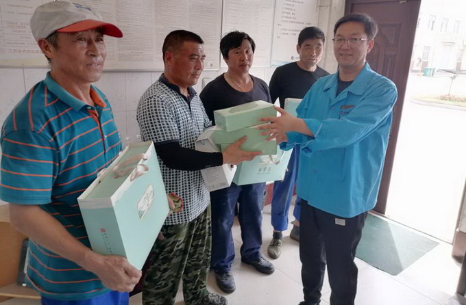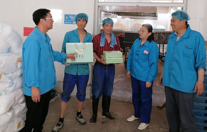 6月8日,我公司工會(huì)開展夏季“送清涼”活動(dòng),黨委副書記、工會(huì)主席曹開明一行,為高溫下的一線職工送去了茶葉、菊花茶等防暑降溫用品。