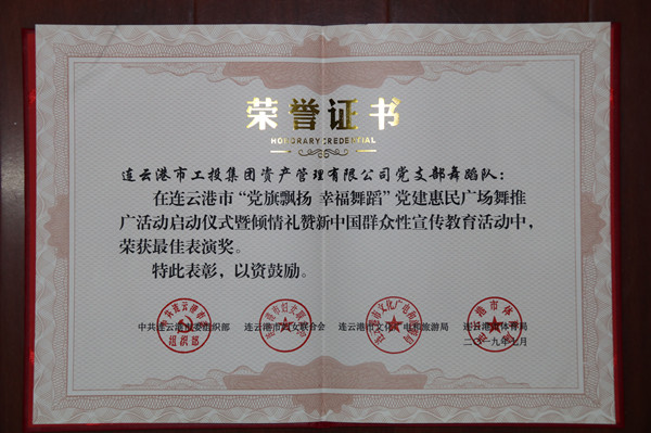 7月16日,連云港市“黨旗飄揚(yáng)幸福舞蹈”黨建惠民廣場舞推廣活動(dòng)啟動(dòng)儀式暨群眾性宣傳教育活動(dòng)在市文化藝術(shù)中心舉行。啟動(dòng)儀式上,來自工投集團(tuán)資產(chǎn)管理公司舞蹈隊(duì)登臺展演,榮獲市委組織部、市婦聯(lián)、市文廣旅局、市體育局聯(lián)合頒發(fā)的“最佳表演獎(jiǎng)”。 為了參加這次活動(dòng),公司舞蹈隊(duì)12名隊(duì)員進(jìn)行了近一個(gè)月的辛苦排練。隊(duì)員們在表演中動(dòng)作精準(zhǔn),以零失誤完成各個(gè)動(dòng)作,獲得觀眾熱烈掌聲和高度評贊。此次登臺演出,充分展示了工投集團(tuán)職工的精神面貌和公司舞蹈隊(duì)廣場舞的扎實(shí)基礎(chǔ)。 (資產(chǎn)管理公司宣) |