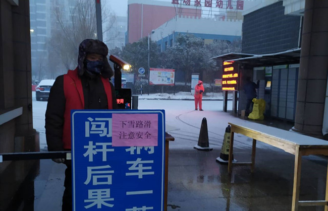 作為公司職工居住的鹽場家園小區(qū),按照金海社區(qū)要求,執(zhí)行封閉管理,每戶只發(fā)一個通行證,除門衛(wèi)外,管理人員全部參與輪流值班。特殊天氣時,大門的看守更加嚴(yán)格與認真,值班人員對過往的人員登記、量體溫,確保沒有問題后才給與放行。大雪洋洋灑灑,清晨的鹽場家園銀裝素裹,泰祥物業(yè)的工作人員,佩戴好口罩,拿著掃帚彎著腰,揮動手中的工具在清理積雪。雪已結(jié)成冰,但他們不畏寒冷,堅毅有力,鏟掉冰凍。寒冷的天氣,絲毫沒有影響大家的熱情,先主路后支路,逐漸掃出一條整潔的路面,疫情面前,泰祥物業(yè)人用行動用嚴(yán)格用責(zé)任溫暖了業(yè)主的心。