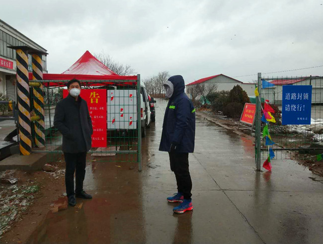公司黨委書記、董事長胡傳法冒雪檢查成業(yè)飼料卡口,胡書記囑咐在現(xiàn)場值班的團青干部防控一線,要動真格不能含糊,堅決不給外來車輛通過。負責(zé)這里還有生產(chǎn)生活服務(wù)中心和黃沙分場的全體管理干部,大家都很辛苦,但沒有埋怨,都在默默地堅守崗位,履行職責(zé)。“你不站崗我不站崗,誰保衛(wèi)咱大場”他們是這樣說也是這樣做的。為了讓值守人員有一個溫暖的臨時休憩的場所,泰祥公司將一個臨時集裝箱拉到卡口,后勤班的小伙子們,搬運調(diào)試固定,絲毫沒有因為寒冷的天氣影響工作進度。