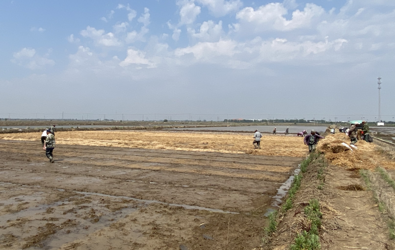 6月10日,在大新農(nóng)場(chǎng)的秧板田里,新品種“稻花香2號(hào)”啟動(dòng)落谷作業(yè),撒種、蓋草、鋪膜,處處都是繁忙景象,成了綠色田野上的一道亮麗風(fēng)景線。