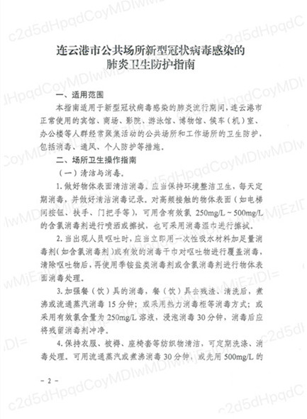 【防護(hù)指南】連云港市公共場所新型冠狀病毒感染的肺炎衛(wèi)生防護(hù)指南