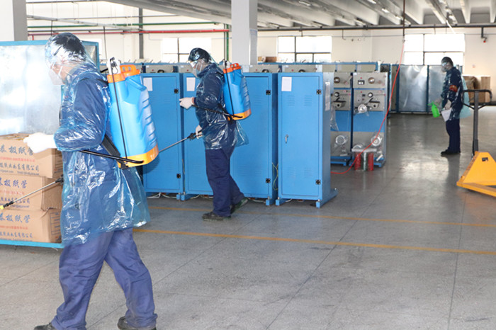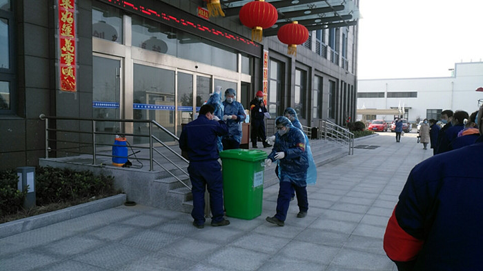 乙班班長封安帶領員工前往生產(chǎn)現(xiàn)場進行消殺,對發(fā)熱員工可能出入和接觸的工作現(xiàn)場、操作臺、更衣室、原輔材料、工具等進行徹底消毒。生產(chǎn)設備部王勇、王卉啟動調(diào)查程序,詢問其他員工,了解發(fā)熱員工行動軌跡和密切接觸情況。