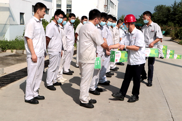 7月30日上午,公司黨支部書記、總經(jīng)理韓立新代表公司開展夏季送清涼活動(dòng),為全體職工送上組織的關(guān)懷和貼心準(zhǔn)備的牛奶等防暑降溫慰問品,送來一縷清風(fēng)。(神特宣)