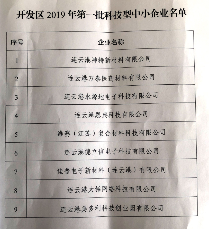 近日,公司被經濟技術開發(fā)區(qū)管委會認定為“2019年第一批科技型中小型企業(yè)”。