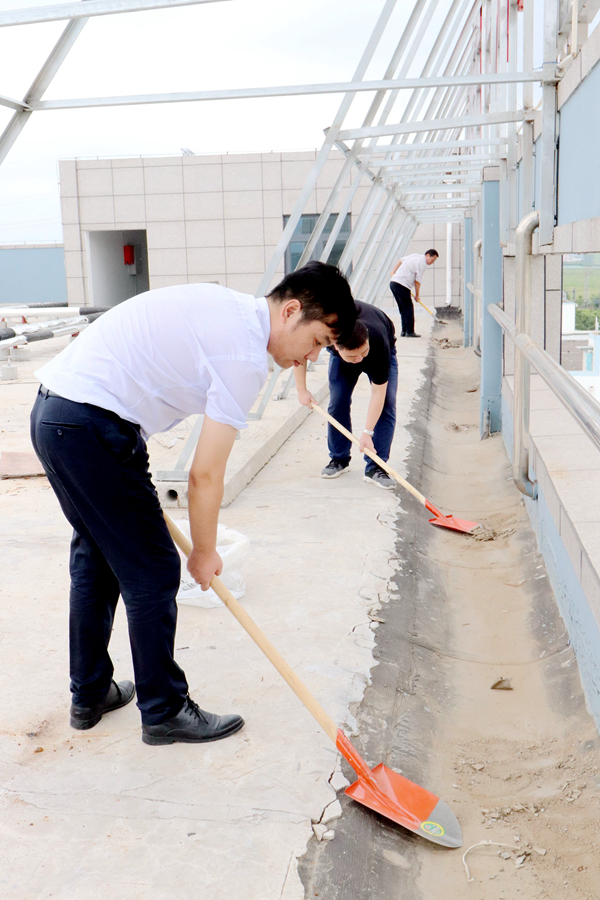 為凈化、美化公司辦公樓樓頂環(huán)境,消除積水隱患,8月26日上午,公司組織黨員、團員青年志愿者開展了專項清理整治行動。志愿者不畏艱辛,對樓頂進行了細致清掃,認真疏通排水口,力爭陰雨天氣不再出現(xiàn)積水現(xiàn)象。(神特宣)