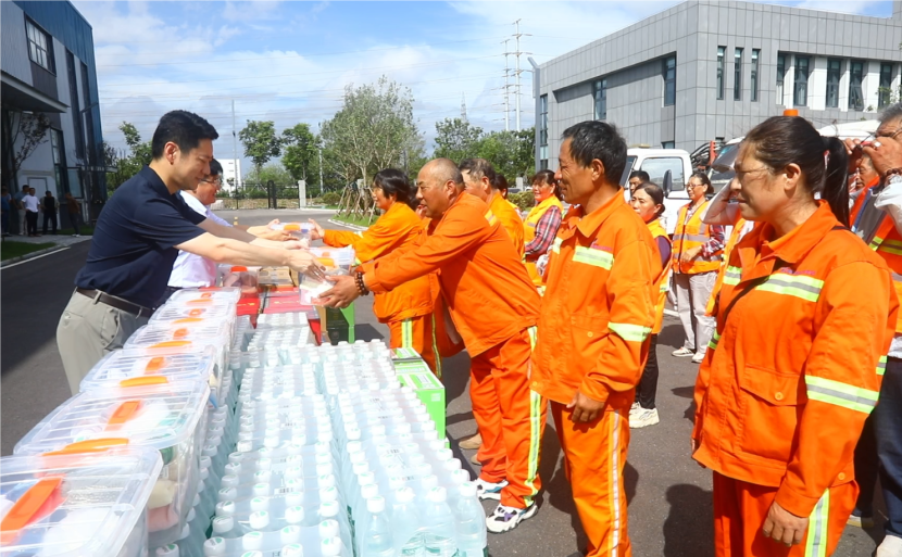 高溫下的熱情,用關(guān)愛(ài)撫慰人心。公司工會(huì)持續(xù)開(kāi)展“夏送清涼保安康”活動(dòng),先后到先鋒東灘、躍湖路、東方大道、黃海大道等作業(yè)現(xiàn)場(chǎng),慰問(wèn)不畏高溫,不懼辛苦奮戰(zhàn)在高溫現(xiàn)場(chǎng)的干部職工,為在高溫天氣下堅(jiān)守崗位的職工們撐起一片綠蔭。把清涼的飲用水、綠茶和綠豆湯,以及防暑降溫藥品送到職工手中,親切地囑咐職工們做好自我防護(hù),提醒大家在戶外作業(yè)的同時(shí)要注意防暑降溫,注重作業(yè)安全和身體健康。