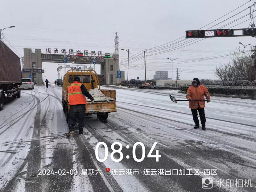 “雪情即戰(zhàn)情”。天剛蒙蒙亮,猴嘴、開(kāi)發(fā)區(qū)、連云、墟溝····連云港火車(chē)東站、馬山立交、黃海大道、花果山大道、東方大道·····到處是臺(tái)北、華茂公司的“橙色”突擊隊(duì)