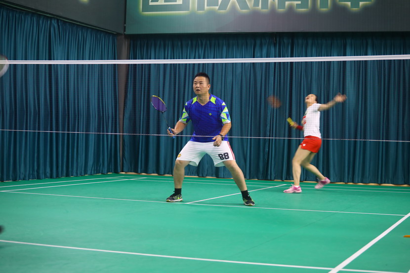 下午進(jìn)行的混雙淘汰賽迎戰(zhàn)實力強(qiáng)勁的對手集團(tuán)機(jī)關(guān)、神特、氨綸公司隊,我臺北公司隊打出亮眼表現(xiàn)。比賽中,隊員毫不退讓,盡力抓住每個得分機(jī)會。在混雙“雙保險”失利一組的情況下,另一對選手張海寧、袁桂芹穩(wěn)扎穩(wěn)打,逐漸打出了氣勢,后場高球、網(wǎng)前輕吊、大力扣殺……他們以犀利的進(jìn)攻直下三城,成功殺入決賽。
