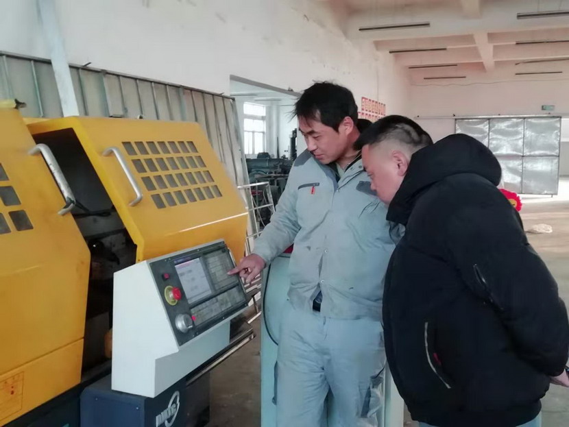 ▲2021年度星級(jí)員工-趙原塵(藍(lán)衣)指導(dǎo)新員工操作數(shù)控機(jī)床
