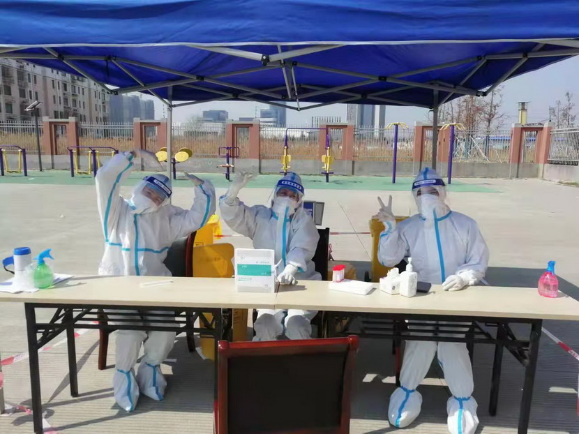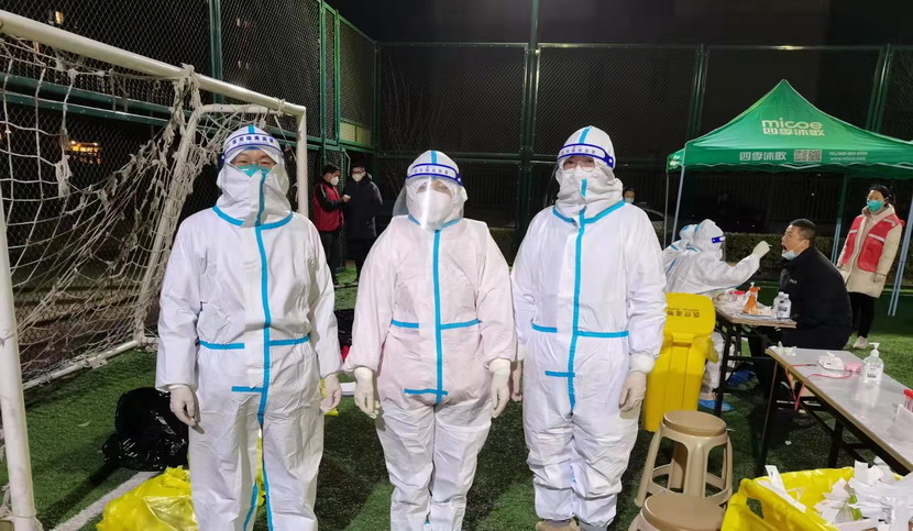 志愿服務(wù)篇。“現(xiàn)在我們是封控區(qū),不能出去給政府添亂,閑也是閑著,所以社區(qū)一招手我們就來了”這是臺(tái)北女工委副主任宋文靜的一席話。這波疫情來的突然,緊急核酸檢測緊缺志愿者服務(wù)。在公司”戰(zhàn)疫情、爭貢獻(xiàn)“主題實(shí)踐活動(dòng)感召下,她已經(jīng)在小區(qū)擔(dān)綱核酸檢測志愿者有兩個(gè)夜晚了。而這一幕決不只在海州主城區(qū),在開發(fā)區(qū)昌圩社區(qū),臺(tái)北志愿服務(wù)隊(duì)已經(jīng)成為社區(qū)防疫主力。疫情伊始,臺(tái)北下屬海州灣公司黨支部一班人就已經(jīng)奮戰(zhàn)在社區(qū)防疫一線。黨支部副書記蘇玲、女工胡超,與專業(yè)醫(yī)護(hù)人員一道,穿上厚重防護(hù)服,直接站在核酸檢測最前線,這一站就是12小時(shí)。值班后稍作休息他們就又聯(lián)系總經(jīng)理霍正鋼,翔立黨支部副書記姜海洋,入黨積極分子朱文健等參與聯(lián)防聯(lián)控,擔(dān)當(dāng)疫情義務(wù)宣傳員。