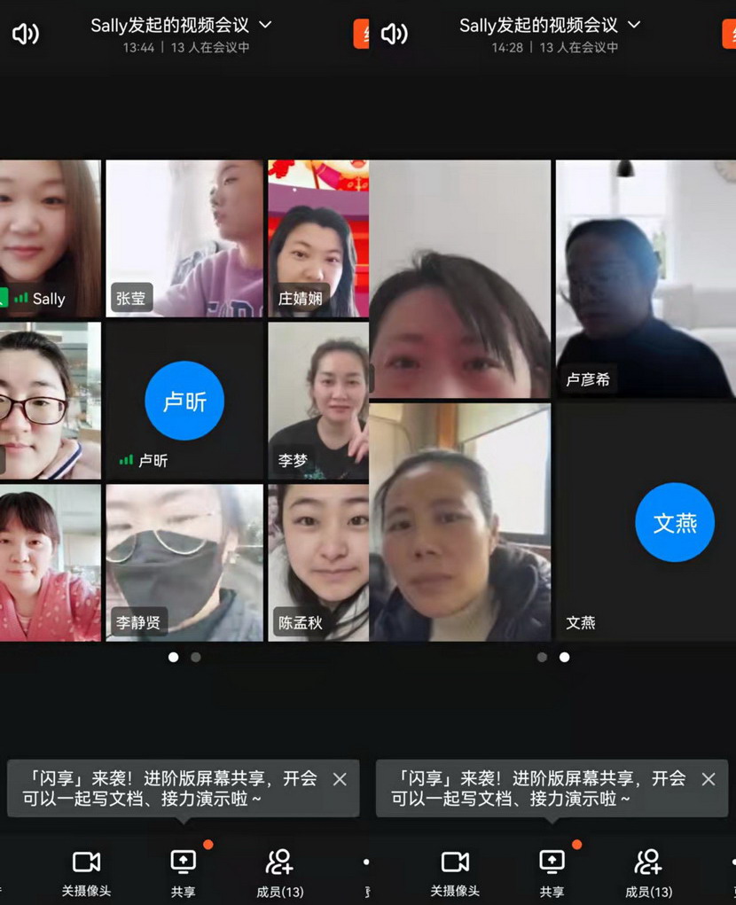 線上貢獻(xiàn)篇。“縱然居家隔離,一樣不防礙我們做貢獻(xiàn),我們線上服務(wù)已經(jīng)開啟”三八節(jié)這一天,在社區(qū)忙碌一天的公司女工委副主任宋文靜又特意安排了“三八”節(jié)線上活動(dòng)。這一天活動(dòng)精彩紛呈:首先是視頻連線,通過廣大女工并向她們家人傳達(dá)市委市政府以及集團(tuán)黨委、投資公司黨委關(guān)于疫情防控文件精神。其次共同學(xué)習(xí)全國“兩會(huì)”會(huì)議精神。第三,開展公司“三新”解放思想大討論線上論壇,圍繞疫情防控、生產(chǎn)經(jīng)營,尤其是企業(yè)轉(zhuǎn)型發(fā)展出謀劃策。最后還來了點(diǎn)小游戲-成語“飛花令”,給嚴(yán)肅的疫情防控增添了一息歡樂的氛圍。