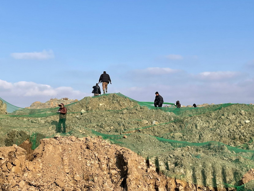 三是做好大型裸露地塊苫蓋。20日下午,西風(fēng)正勁,來(lái)自海州灣、翔立、美多利、資源公司、猴嘴辦、養(yǎng)殖辦、留守處、臨達(dá)、機(jī)關(guān)等9個(gè)黨支部的黨員突擊隊(duì)、志愿服務(wù)隊(duì)等,全員投入緊張的防塵苫蓋工作中。經(jīng)過(guò)半天搶工,100余畝祼土得到及時(shí)苫蓋。