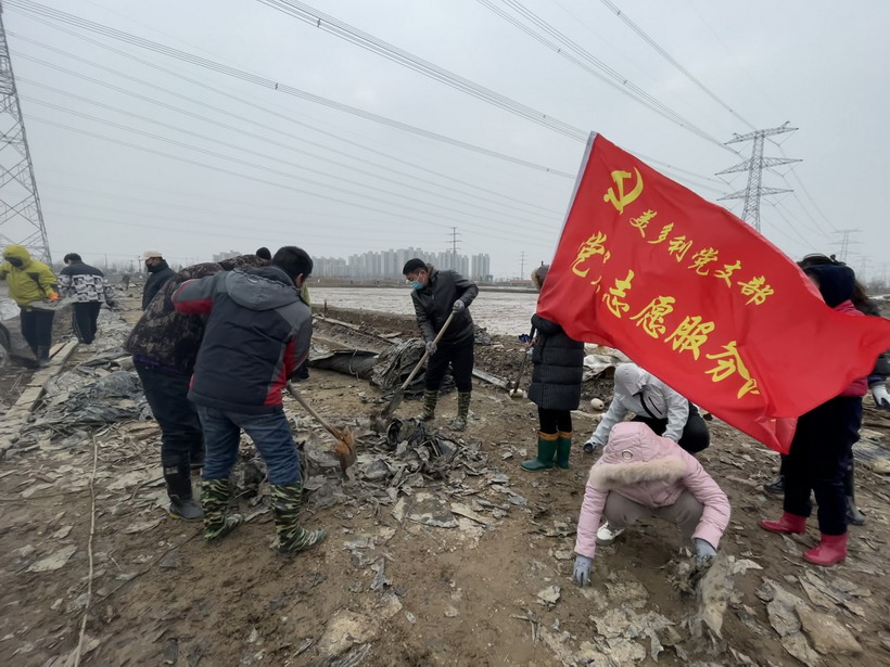 寒風(fēng)中,志愿者們忙碌在鹽灘上,充分發(fā)揚(yáng)不怕累、不怕臟的精神,對附近區(qū)域的垃圾、雜物進(jìn)行清理。經(jīng)過一個下午的辛勤勞動,共清理廢棄的塑布、木板等雜物十余車,用行動和汗水,扮靚了鹽場人的家園。