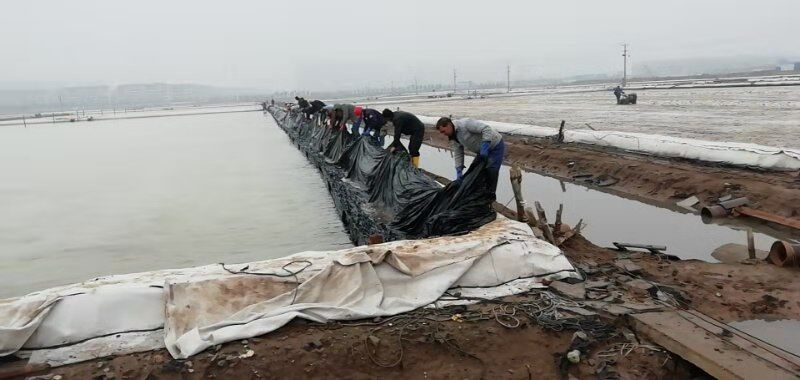 由于勞動(dòng)力較為缺乏,人工扒鹽分為兩個(gè)班次白班和小夜班。工人們?cè)谕瓿筛髯园啻稳蝿?wù)的同時(shí),還要承擔(dān)起后期繁瑣的相關(guān)工作。例如:扒鹽前要將塑池內(nèi)的塑布整理、收縮到位、用活碴機(jī)對(duì)準(zhǔn)備要扒格塊進(jìn)行活碴、成廩后對(duì)鹽廩全面覆蓋、并抽出專人對(duì)大夜班空檔期電纜線及機(jī)電設(shè)備進(jìn)行看管等等。其中池板整理是一項(xiàng)緊急活,扒完鹽后鹵水要緊跟著進(jìn)池,小夜班的人下班后有時(shí)只睡幾個(gè)小時(shí),早上7點(diǎn)多就來到灘頭整理池板,為抓緊灌池爭(zhēng)分奪秒爭(zhēng)。