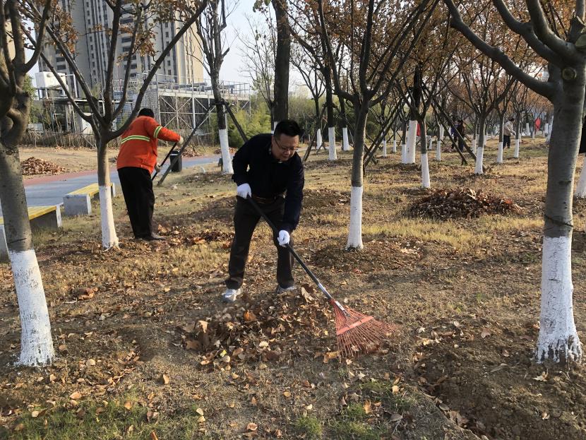 活動(dòng)現(xiàn)場(chǎng),黨員同志、積極分子分為兩撥,分別從創(chuàng)智綠園北門和東門對(duì)園內(nèi)雜草落葉進(jìn)行清除。在戴好手套,做好防護(hù)、防凍措施的同時(shí),紛紛拿著掃帚、耙子等工具,統(tǒng)籌安排、分工勞作,齊心協(xié)力,有的用掃帚掃落葉、有的用袋子裝落葉、有的用耙子摟落葉……大家忙得熱火朝天,充分發(fā)揚(yáng)不怕臟、不怕苦、不怕累的黨員先鋒本色,創(chuàng)智綠園內(nèi)處處是同志們清理雜草落葉的身影,構(gòu)成了一道亮麗的風(fēng)景線,經(jīng)過(guò)一個(gè)多小時(shí)的辛勤勞動(dòng),兩撥隊(duì)伍順利“會(huì)師”,沿途雜草落葉被清理得干干凈凈,公園環(huán)境也得到明顯改善。