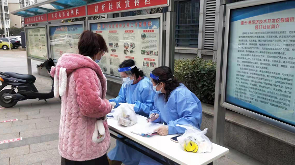 “我白天配合‘大白’做核酸信息采集工作,晚上要把信息及時(shí)錄入電腦,連軸轉(zhuǎn),連掛兩天吊針。昌圩社區(qū)志愿服務(wù)截止到今天配合“大白”完成五次核酸檢測工作,第一天核酸檢測1070人,從中午1點(diǎn)到7點(diǎn)多,站了6、7個(gè)小時(shí),雖然很累但我很自豪!因?yàn)槲沂枪伯a(chǎn)黨員!”