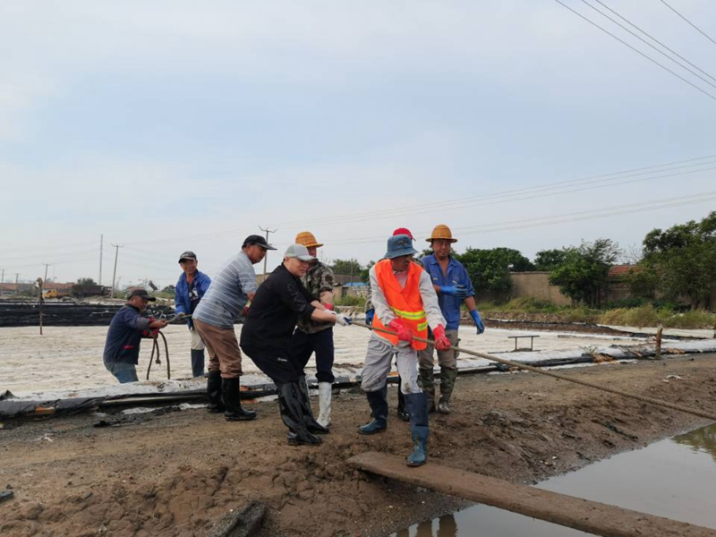 秋鹽開扒以來,海州灣公司上下所有干群,主動(dòng)放棄節(jié)假日,晝夜奮戰(zhàn)在鹽池里。人工扒鹽三班倒,做到人停機(jī)不停;跟班人員24小時(shí)無縫銜接,確保時(shí)刻在扒鹽現(xiàn)場做好安全監(jiān)管工作。目前,隨著堿廠關(guān)停的步伐加快,原鹽搶收工作進(jìn)入到了決戰(zhàn)階段,在公司黨委的大力支持下,兄弟單位及機(jī)關(guān)各職能部門的火速馳援下,海州灣公司迅速啟動(dòng)第二臺(tái)機(jī)械扒鹽管道,與人工扒鹽同步進(jìn)行。公司領(lǐng)導(dǎo)與廣大職工想在一起、干在一起,上下齊心、爭分奪秒,擼起袖子、甩開膀子,在鹽池間盡情地?fù)]灑著汗水,確保勞動(dòng)成果顆粒歸倉,誓奪原鹽收官戰(zhàn)的勝利。