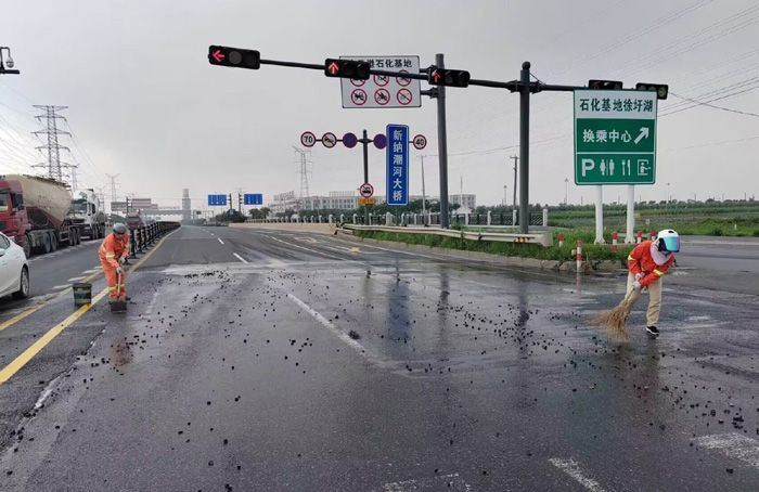 為及時快速排除道路突發(fā)障礙,保障路面車輛行人安全暢通,保潔勇士無懼高溫炎熱天氣,快速高效清理路面車輛拋灑,工作中用汗水彰顯責(zé)任與擔(dān)當(dāng)。